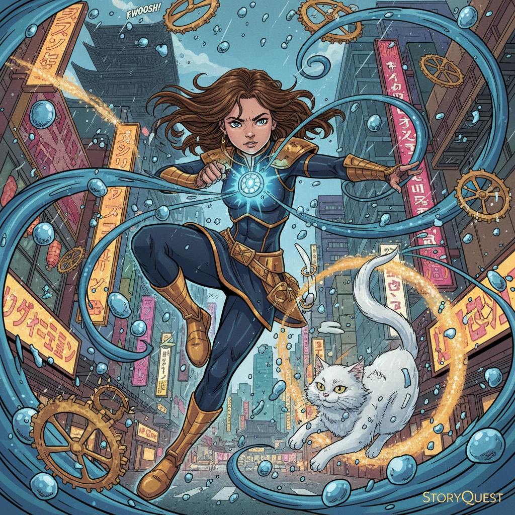 As I hurried back home, I noticed no cars came by, no people walked past, and there was no noise. I felt alone, but I kept walking. Then, I saw my cat, Casper. As I walked closer, I realised my necklace that freezes time was in his mouth. As I called him, "Casper! Casper!" he ran through a clear wall.